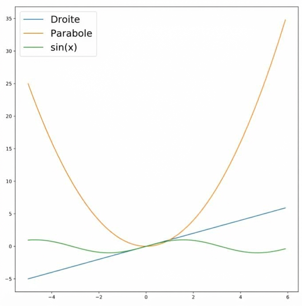 plt.scatter() affiche des points de données individuelsplt.bar() crée des diagrammes en barresplt.hist() visualise des distributions