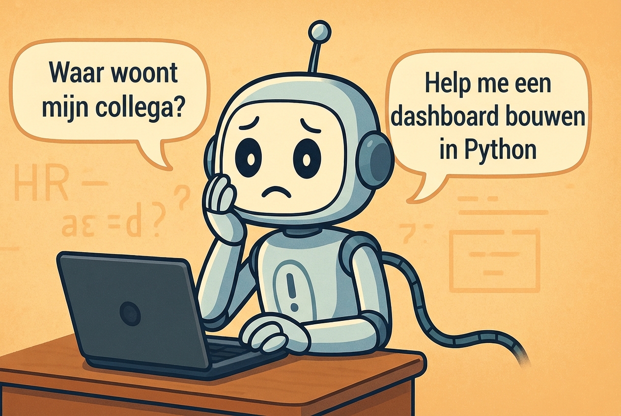 | Relevantieclassificatie | Invoer | HR-agent krijgt "Maak een dashboard in Python" en leidt om naar HR-onderwerpen |