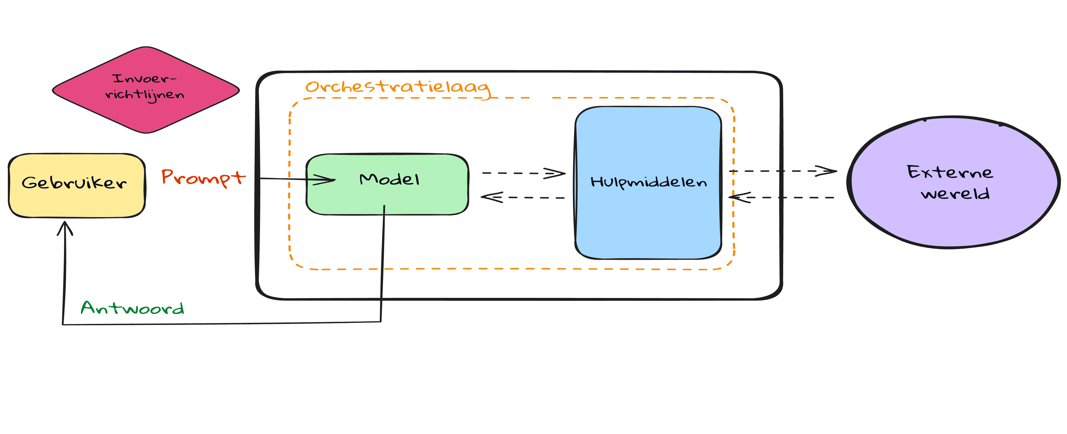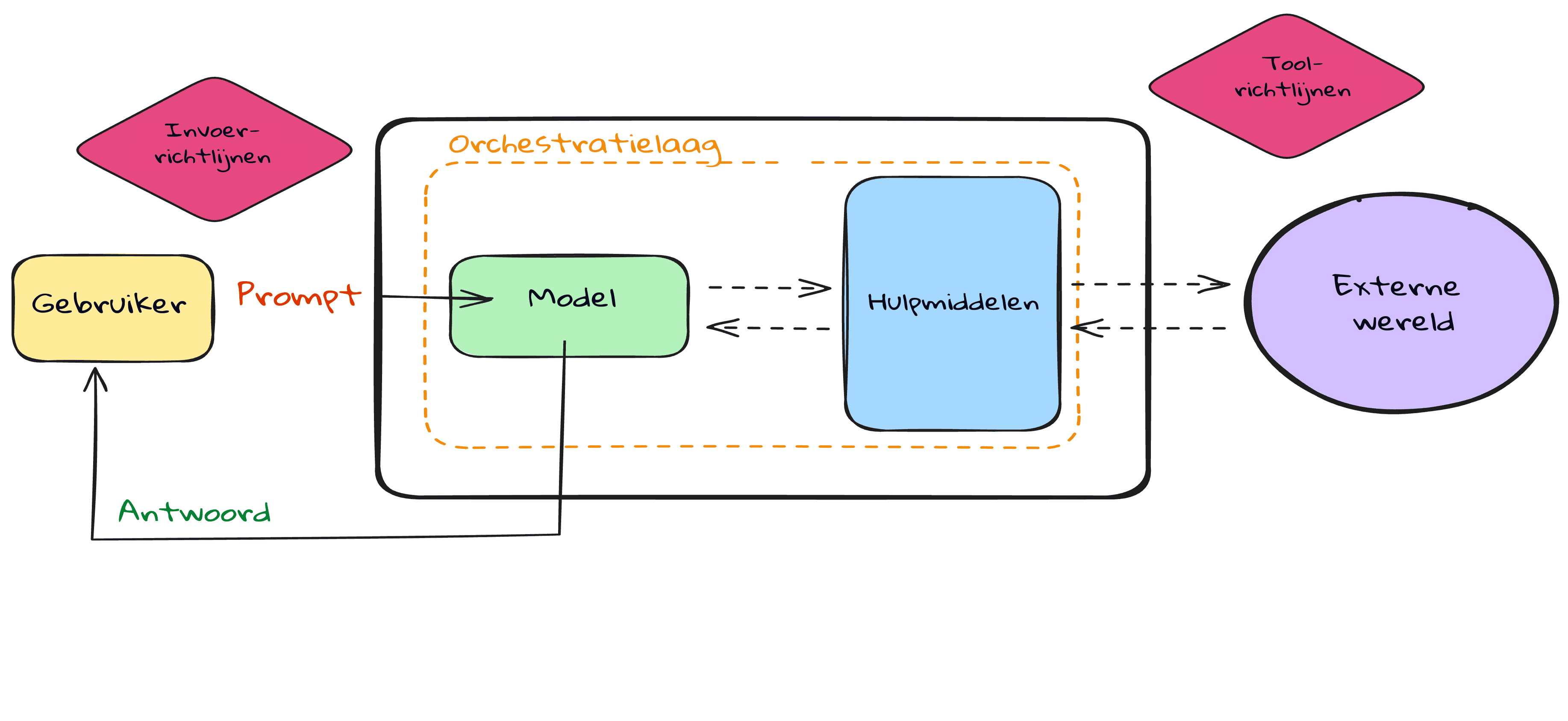 | Uitvoervalidatie | Uitvoerguardrail | Zorgt ervoor dat de toon van het antwoord bij de normen van het bedrijf past |