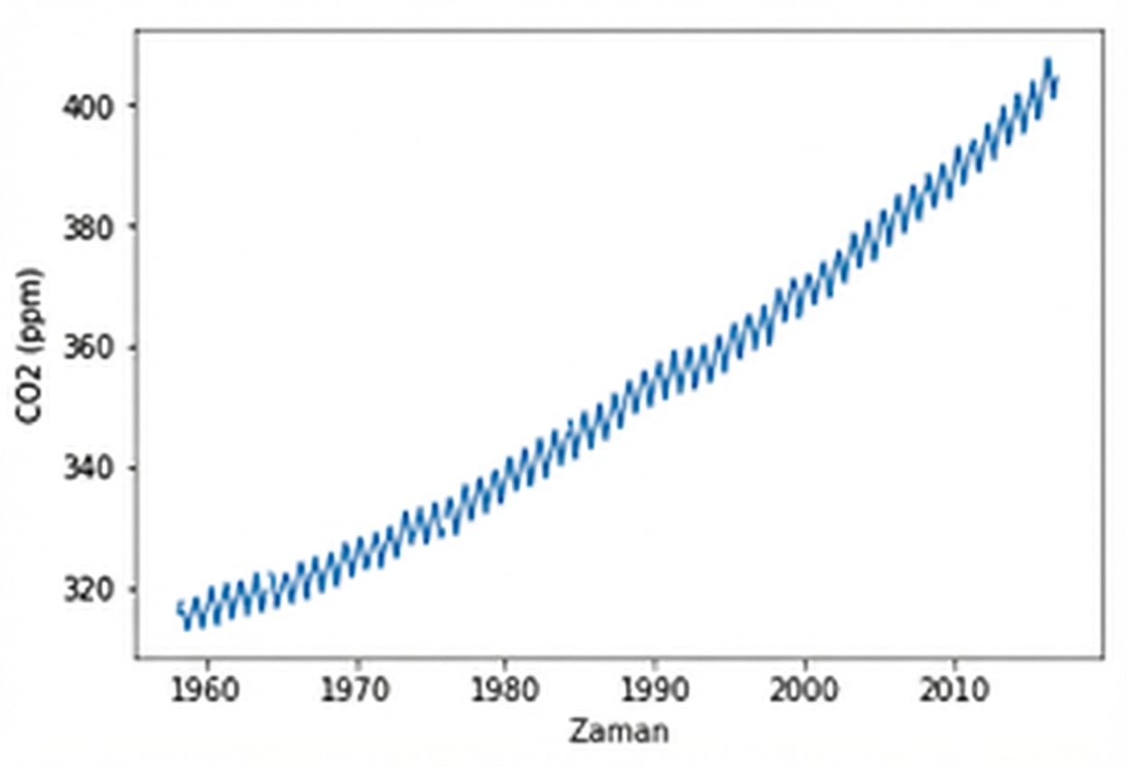 sixty_nine = climate_change["1969-01-01":"1969-12-31"]fig, ax = plt.subplots() ax.plot(sixty_nine.index, sixty_nine['co2']) ax.set_xlabel('Zaman') ax.set_ylabel('CO2 (ppm)') plt.show()