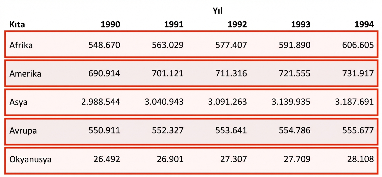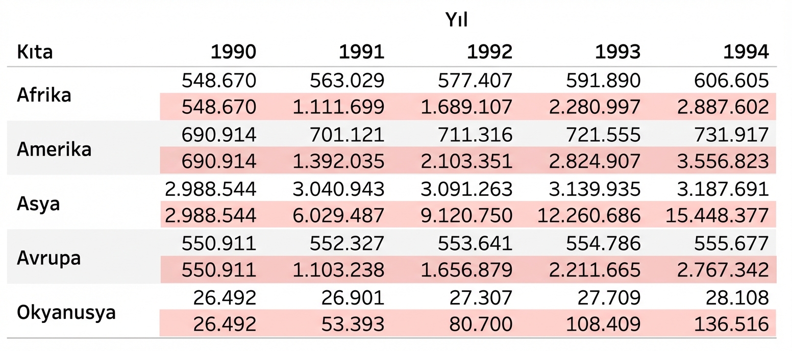 Tablo hesaplamaları şunlarla tanımlanır: