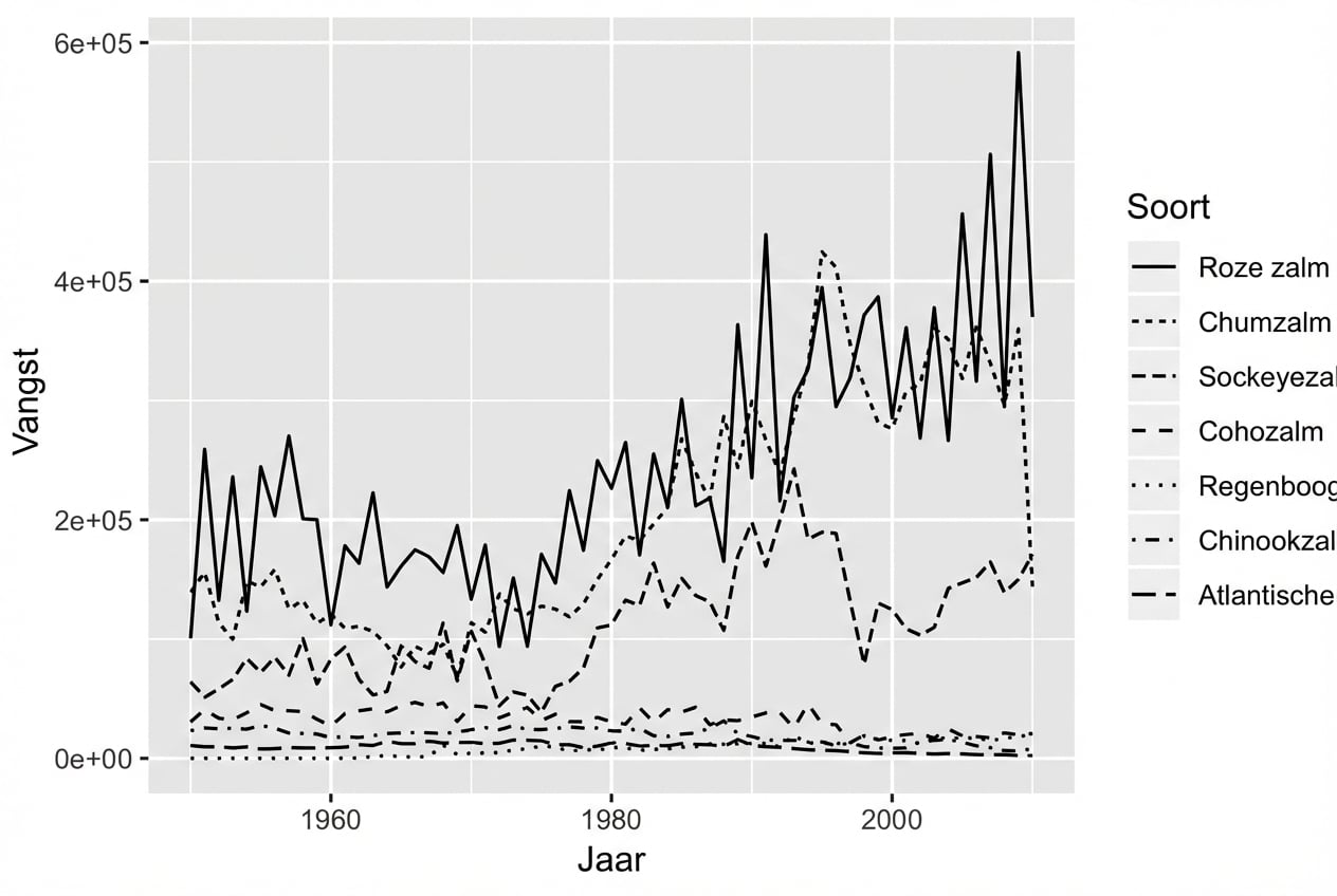 $ Species: Factor w/ 7 levels "Pink","Chum",..: 1 2 3 4 5 6 7 1 2 3 ...