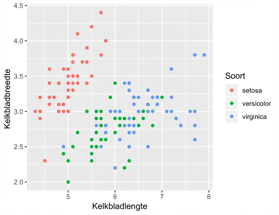 Species, een kolom in de dataframe, wordt gemapt op kleur, een zichtbare esthetiek.