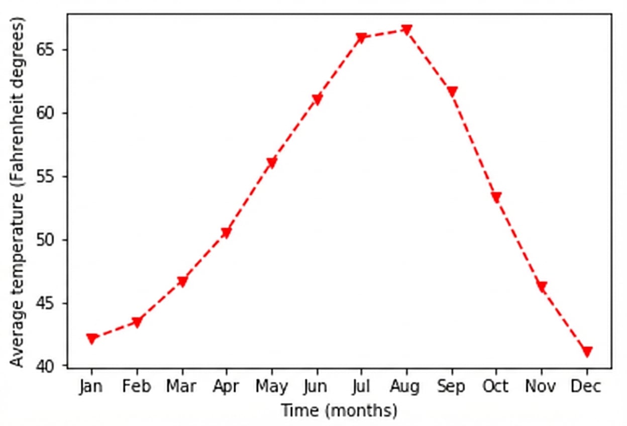 ax.set_ylabel("Gemiddelde temperatuur (graden Fahrenheit)")