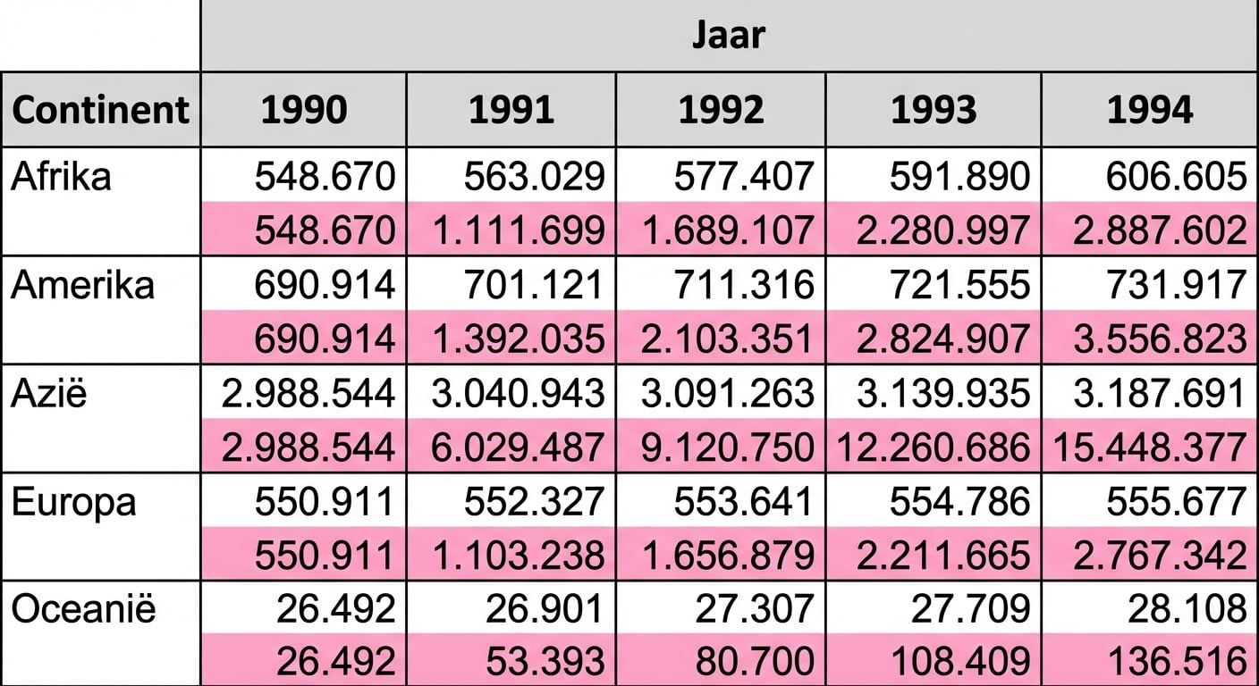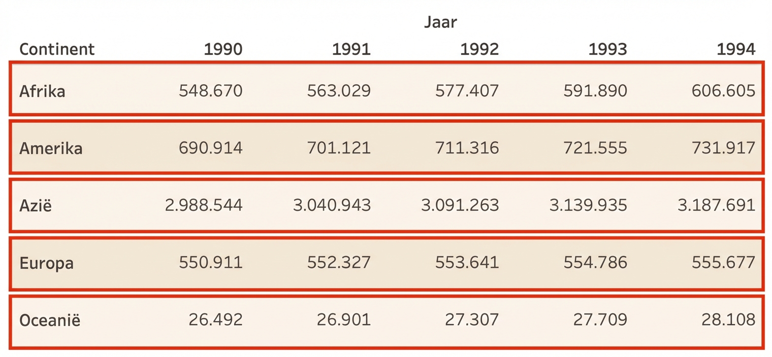 Tabelberekeningen worden bepaald door:
