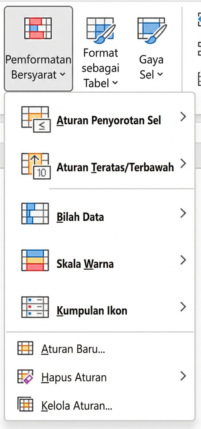 Conditional Formatting memungkinkan penyorotan sel berdasarkan kondisi