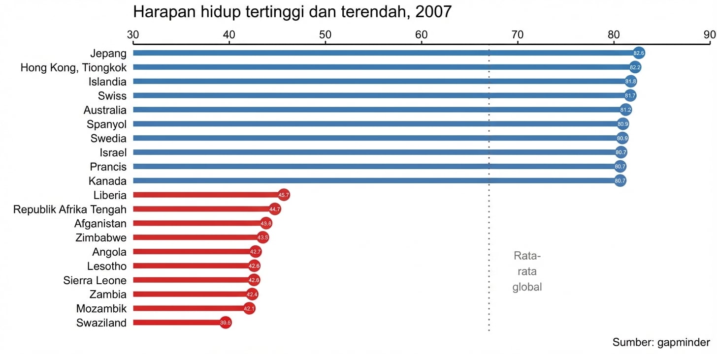 $ lifeExp <dbl> 39.613, 42.082, 42.384, 42.568, 42.592, 42.731, 43.487, 43.82...