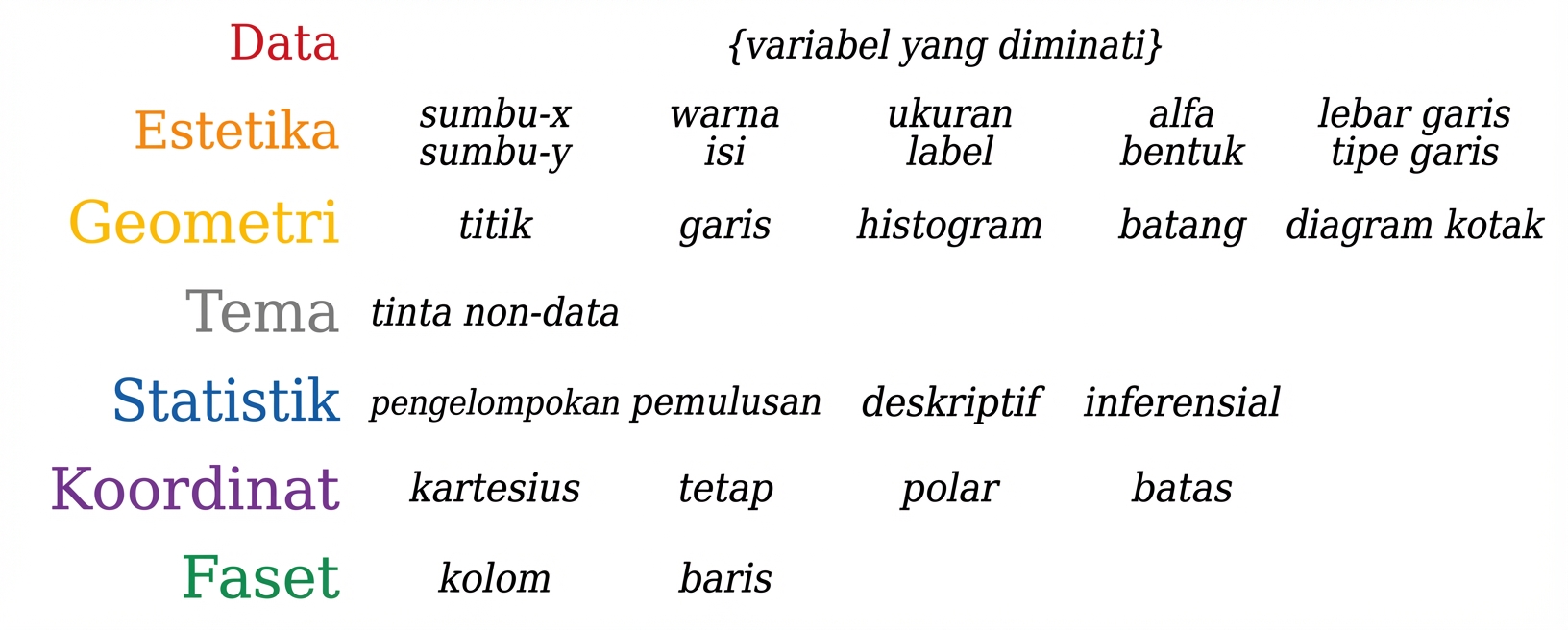 | Geometries | Elemen visual untuk data. |