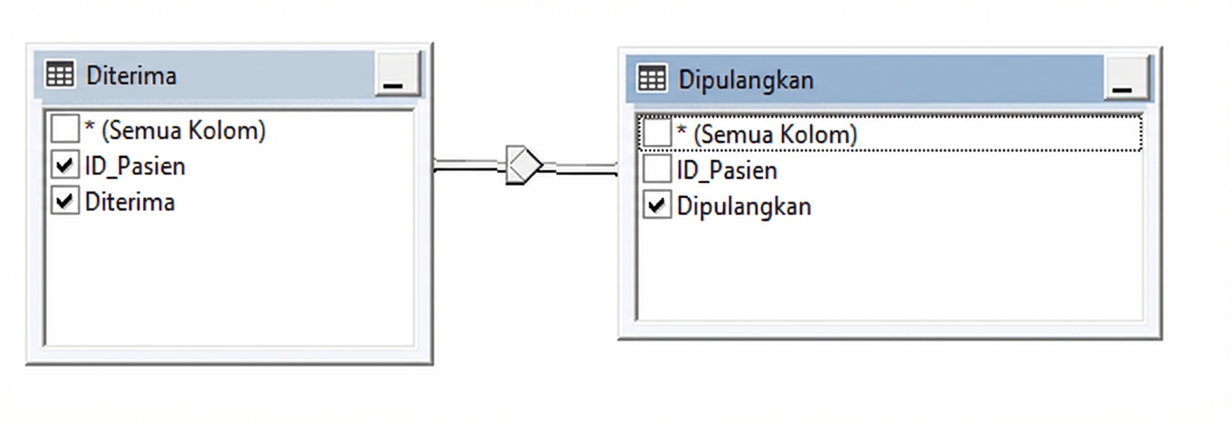 LEFT JOIN Discharged ON Discharged.Patient_ID = Admitted.Patient_ID;